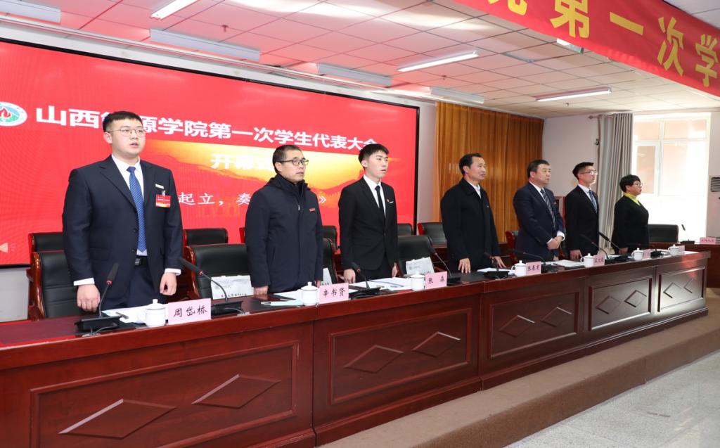 在庄严肃穆的国歌声中,大会拉开了帷幕。院团委书记郑文靖致开幕词,向莅临本次大会的各位来宾表示热烈的欢迎,向长期以来关心和支持学生会工作的各级领导、各位老师表示衷心的感谢。山西医科大学学生会执行主席曹旭同学代表兄弟院校学生会致辞,热烈祝贺我院学代会的顺利召开。山西省学生联合会驻会主席张森代表省学联发表致辞,向广大青年提出坚定理想信念,永远跟党走;坚决从严治会,继续深化学生会改革;不断加强自身建设,发挥履职尽责的带头作用三点希望。