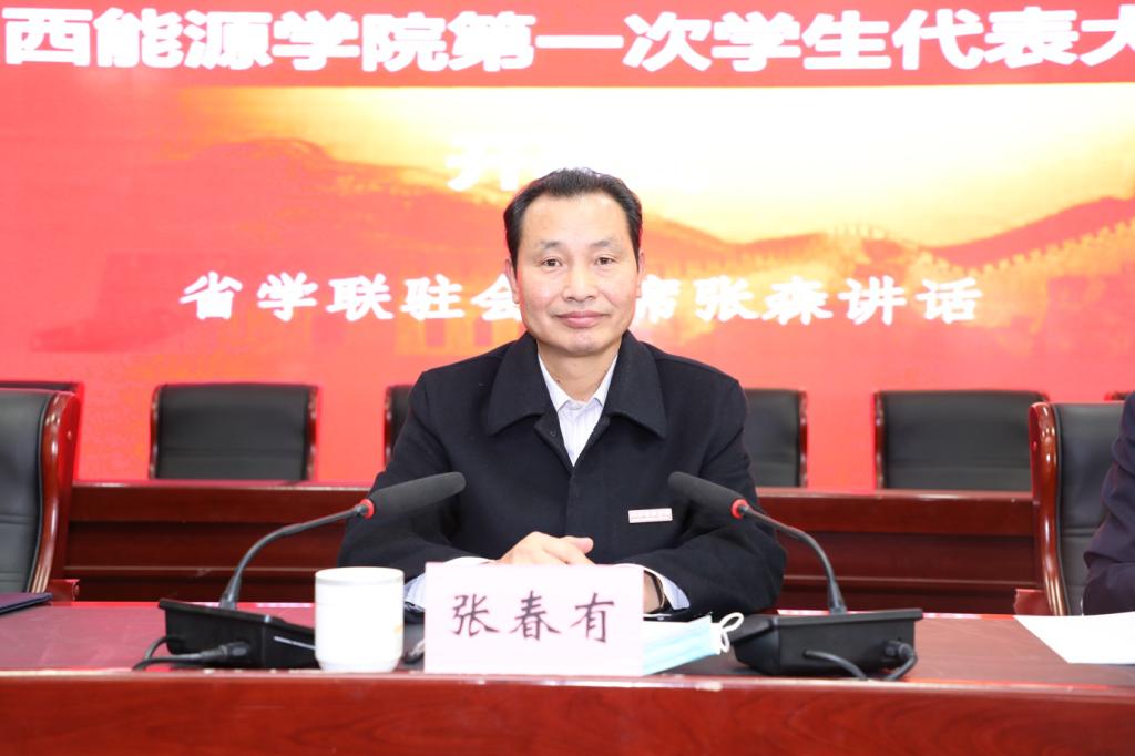 院党委副书记张春有代表学院党委对大会的召开表示热烈祝贺。他指出,多年来,学生会秉承“全心全意为学生服务”的工作宗旨,充分发挥学院党政联系青年学生的桥梁纽带作用,在维护学生权益、推进学风建设、校园文化建设等方面取得的优异成绩。他向全体代表发出号召:广大学生代表要站在时代发展、学院发展的高度,以饱满的政治热情和严肃负责的态度,认真履行职责,完成好本次大会的各项议程,展示好我院学生良好的精神风貌。张春有书记对广大青年提出四点期望:一要坚定理想信念,不忘跟党初心,争做时代新人;二要坚持履职尽能,勇当青春使命,服务同学成长成才;三要坚持改革创新,完善规章制度,提高自身素质;四要树立远大理想,努力拼搏奋斗,不负青春韶华。