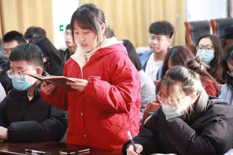 会上,校学生会主席团成员任致萱、祝路云分别领学了党的十九届六中全会会议精神和中国共产党山西省第十二次代表大会会议精神。随后,郑书记围绕总结党的百年奋斗重大成就和历史经验这条主线,以“两个确立”“三个需要”“四大成就”“五大历史意义”“十个坚持”为线索,对党的十九届六中全会精神进行了宣讲。随后同学们结合学习的会议精神,联系实际学习工作分享体会、畅谈感想,会场气氛热烈。大家一致表示:在今后的学习和工作中要始终听党话、跟党走,坚定理想信念,厚植爱国情怀,练就过硬本领,不负时代、不负韶华、不负党和人民殷切期望,做堪当民族复兴重任的时代新人。