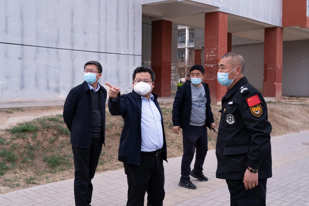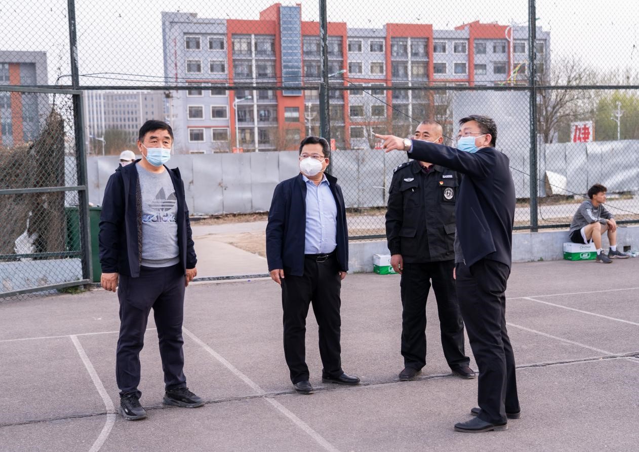 4月8日下午,在校党委书记冯锋的安排下,党委副书记、副院长冯国瑞(主持行政工作)深入校园,针对疫情防控的薄弱环节,围绕beat365东侧围墙问题、篮球场设施建设等工作进行调研并指导。党委委员、副院长孙光辉,保卫部负责人陪同调研。