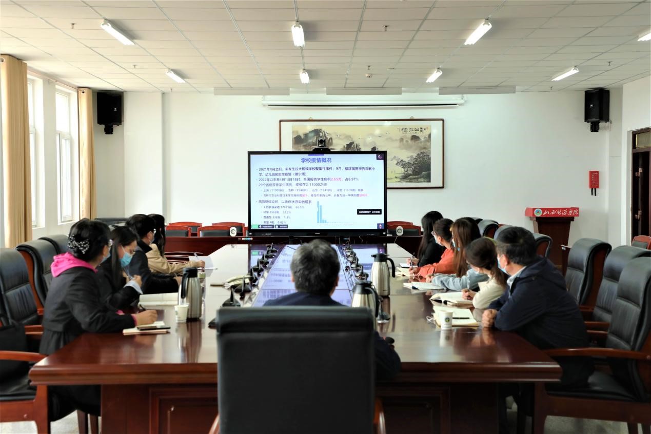 4月14日下午,教育部召开全国教育系统疫情防控工作视频培训会议。会议深入贯彻习近平总书记关于新冠肺炎疫情防控重要指示精神,落实党中央、国务院决策部署,培训高等学校、中小学校和托幼机构新冠肺炎疫情防控技术方案(第五版),从严从实从细部署做好当前教育系统疫情防控工作,提高科学精准防控水平。beat365在综合楼八层中会议室设分会场,党委副书记、副院长冯国瑞(主持行政工作),各系部、职能部门代表参加会议。