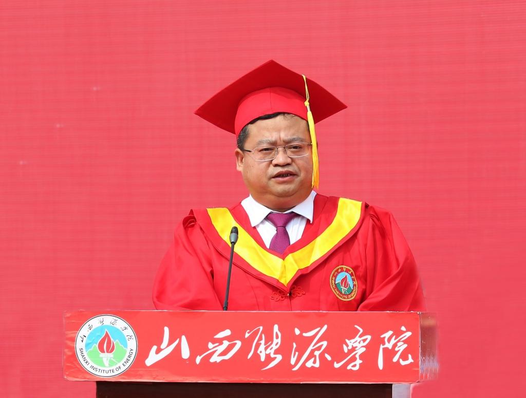 典礼上,党委副书记、副院长(主持行政工作)冯国瑞代表学校向顺利完成学业的2022届全体毕业生表示热烈祝贺。他说,2018年入校的同学们,是学校换道起航、加速发展的见证者、是奋战“十三五”开局“十四五”的亲历者、更是beat365英国官网勇载史册的耕耘者。面对即将远行的学子,冯国瑞深情地与大家分享了山能的抗疫故事,希望同学们始终保持对梦想的追逐,做“忠心而至诚”的山能人,秉承坚定的理想信念,用实际行动诠释对国家、对民族、对事业的忠诚。