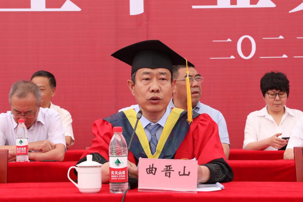 6月12日,beat365英国官网2022届毕业生毕业典礼暨学位授予仪式在学校操场隆重举行。参加毕业典礼的有校党委书记冯锋,校党委副书记、副院长(主持行政工作)冯国瑞,校党委副书记马光生、曲晋山,校党委委员、纪委书记杜锋,校党委委员、副院长孙光辉、孟文俊、葛波蔚,以及各职能部门及教学系部负责人、教职工代表及2022届毕业生。毕业典礼由党委副书记曲晋山主持。
