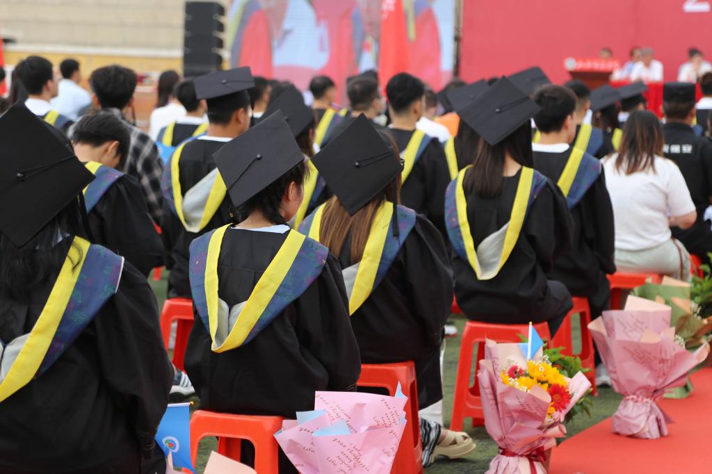 上午9时整,毕业典礼在雄壮的国歌声中拉开帷幕。