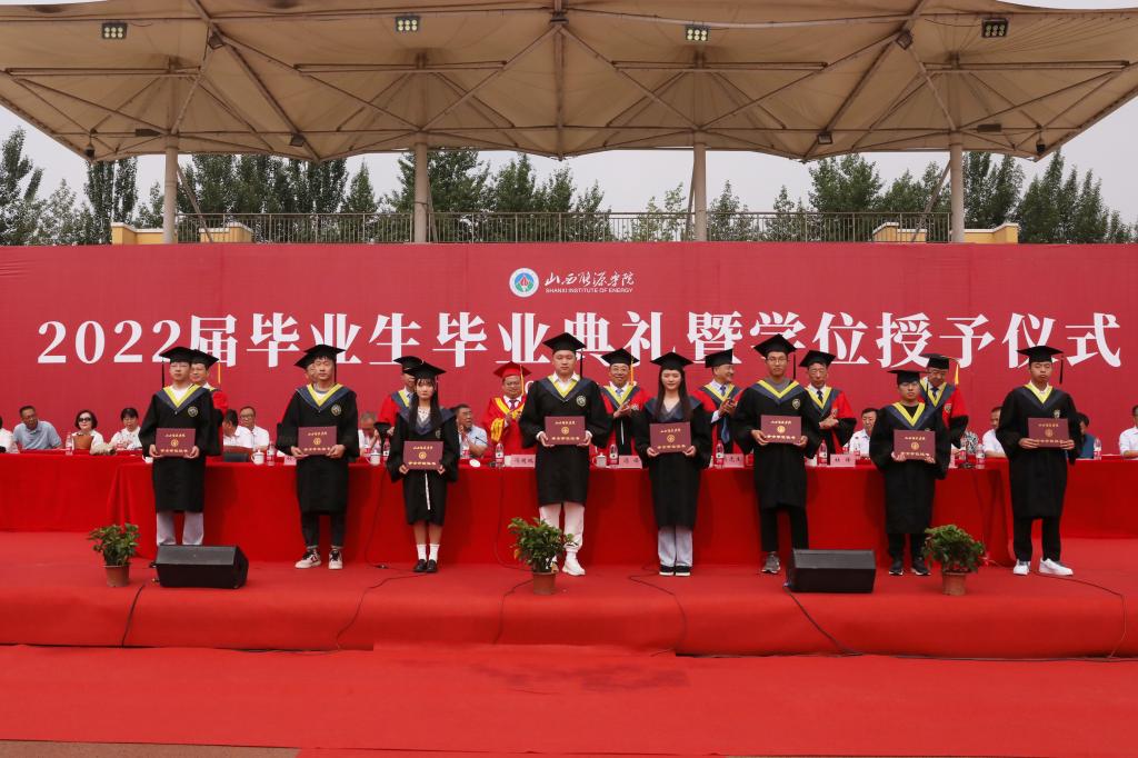 毕业典礼上,党委委员、副院长孟文俊教授宣读了2022届本、专科生获得毕业资格及授予学士学位资格的报告。党委副书记曲晋山宣读了《beat365英国官网关于表彰2022届优秀毕业生的决定》。校领导共同为毕业生代表颁发了毕业证书,学位证书并进行了学位授予,并为优秀毕业生代表颁发了荣誉证书。