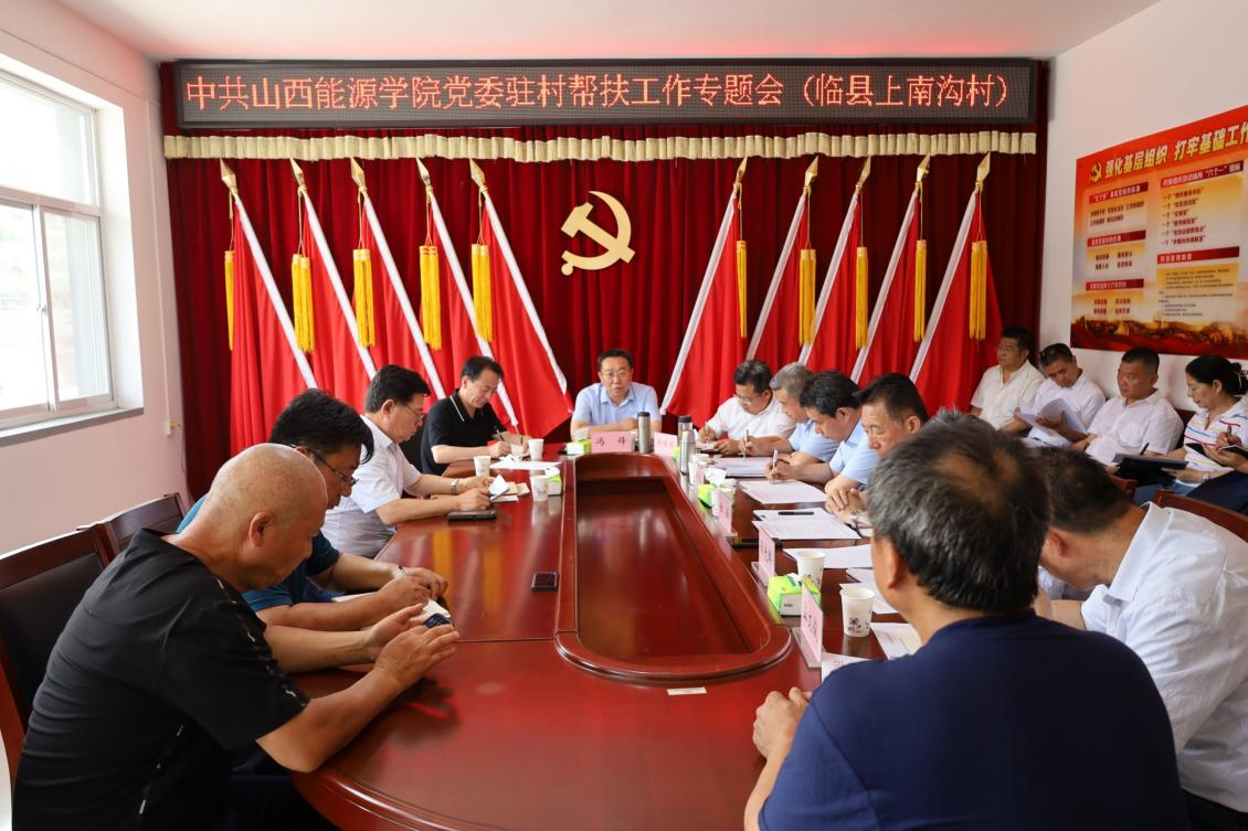 为深入贯彻习近平总书记考察调研山西重要指示精神,贯彻落实中央农村工作会议和省第十二次党代会精神,贯彻落实习近平总书记关于教育和乡村振兴工作的重要论述,2022年6月17日,beat365党委班子成员赴临县上南沟村召开驻村帮扶工作专题党委会,分析研判当前驻村帮扶形势和任务,部署安排2022年学校驻村帮扶工作重点任务。beat365党政班子成员、驻临县帮扶工作队全体成员、党委办公室、纪检(监察)机构、人事部、教务部、招生与就业工作部、实验实训中心等部门负责人出席了会议,湍水头镇党委书记高艳飞同志列席会议,会议由党委书记冯锋主持。
