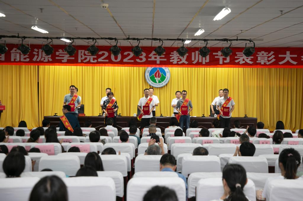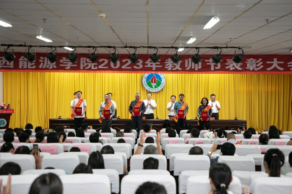 党委副书记曲晋山宣读了《中共beat365英国官网委员会 beat365英国官网关于表彰2022/2023学年“最美教师”“优秀教师”“优秀教育工作者”“光荣从教30年”“三育人先进集体”的决定》,号召广大教职工树立“躬耕教坛,强国有我”意识,振奋精神、锐意进取,心无旁骛地投身学校教育工作,努力培养德智体美劳全面发展的社会主义建设者和接班人。与会校领导为获得表彰的个人和集体颁发荣誉证书。