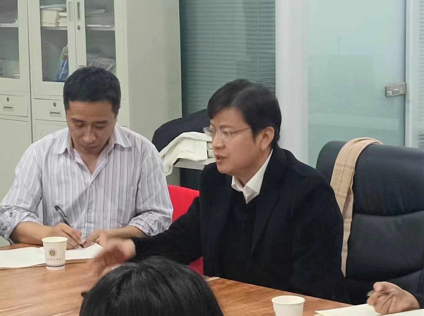 座谈会由周云飞副主任主持。他首先代表计算机与信息工程系对地质与测绘工程系的到来表示热烈欢迎,并介绍了计算机与信息工程系目前的科研情况,希望此次学术交流能够进一步促进两系教师科研合作。计算机与信息工程系史明主任表示,计算机是一个工具,在图像识别上和地质方向紧密结合,希望可以从今天开始起步,两系之间有更多交流并深入合作。地质与测绘工程系张明媚副主任介绍了相关专业教师的情况和各自研究方向,并表示地质和计算机是结合非常紧密的两个专业,在地质勘探领域对计算机技术有迫切需求,希望通过学科交叉促进科研团队的建设。