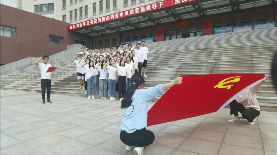 经济系、管理系党总支学生党员在校园迎宾广场面对鲜红的党旗,也进行了庄严宣誓,重温入党誓词,喊出了心中的铮铮誓言。为了继承和发扬党的光荣传统,进一步增强党组织组织力,激发党员荣誉感、责任感和使命感,学生党员通过线下线上相结合特意录制《唱支山歌给党听》视频,以歌声向伟大的党献上最美好的祝福。