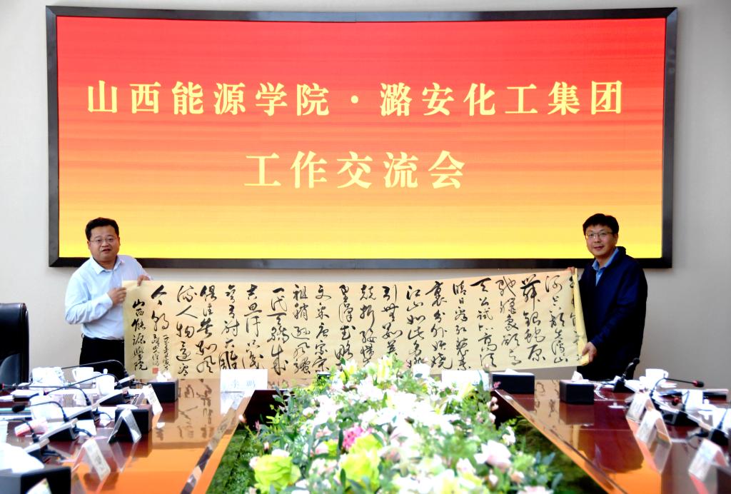 会后,冯国瑞副院长(主持行政工作)在与会人员的共同见证下,代表学校向潞安化工集团赠送了beat365教师创作的书法作品。