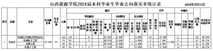2023-2024学年,机电工程系深入贯彻学习党的二十大精神,以习近平新时代中国特色社会主义思想为指导,全面贯彻落实国家关于高校毕业生就业创业工作的各项方针政策,深入分析和准确判断我系毕业生当前面临的就业创业形势,以提高就业质量为工作核心,以提高学生就业、创业、创新能力为工作重点,引导和鼓励毕业生面向基层就业,自主创业。现将本学年就业工作总结如下: