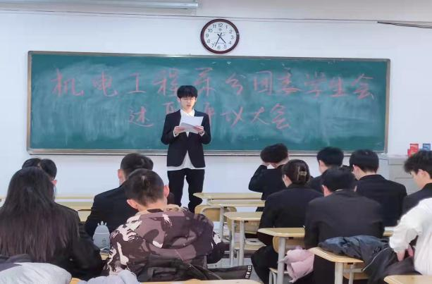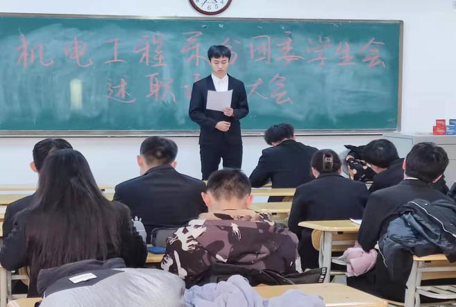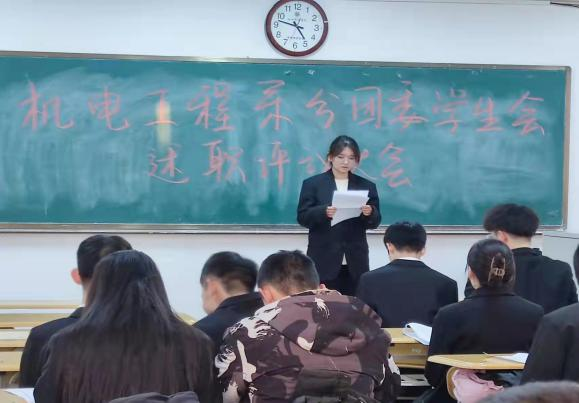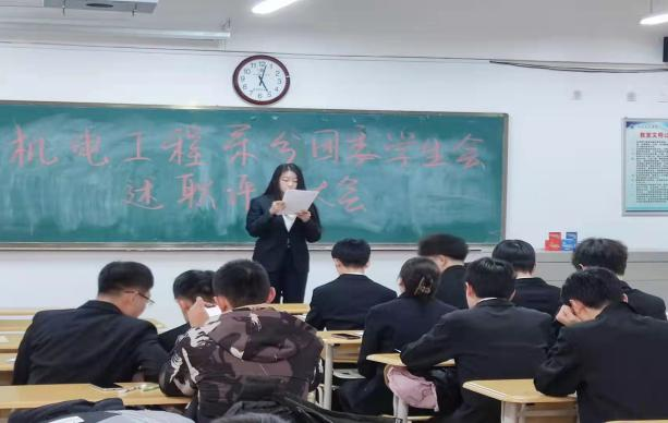 12月27日下午,beat365英国官网机电工程系分团委学生会召开了“机电工程系分团委学生会述职评议大会”,各部门负责人,部员出席会议。本次述职大会以各部门为单位,总结过去一学期的工作,谋求新思路,精益求精,更加完善的工作为主题召开。会议由机电工程系学生会主席贾少凡,姚圣龙主持。