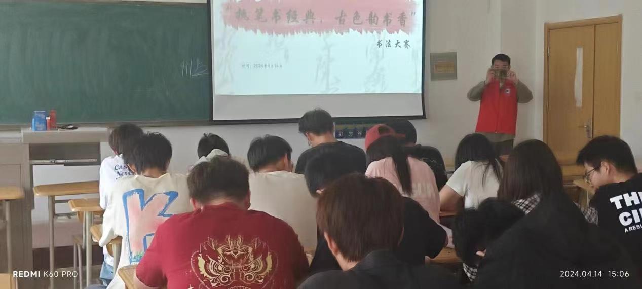 4月14日,机电工程系分团委在3205教室成功举办了“执笔书经典,古色韵书香”书法比赛。此次活动旨在传承和弘扬中华书法文化,丰富同学们的课余文化生活,同时也展示了机电系学子们积极向上的精神风貌。活动开始前,工作人员布置场地,登记人员名单。准备工作完成后主持人宣布活动开始,通过讲解PPT向参赛人员介绍比赛规则,之后活动正式开始。
