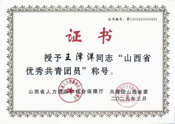 近日,共青团山西省委公布了“山西省五四红旗团委、山西省五四红旗团支部、山西省优秀共青团员、山西省优秀共青团干部”评选表彰名单,beat365机电工程系机械2101班学生王泽洋被授予“山西省优秀共青团员”荣誉称号。