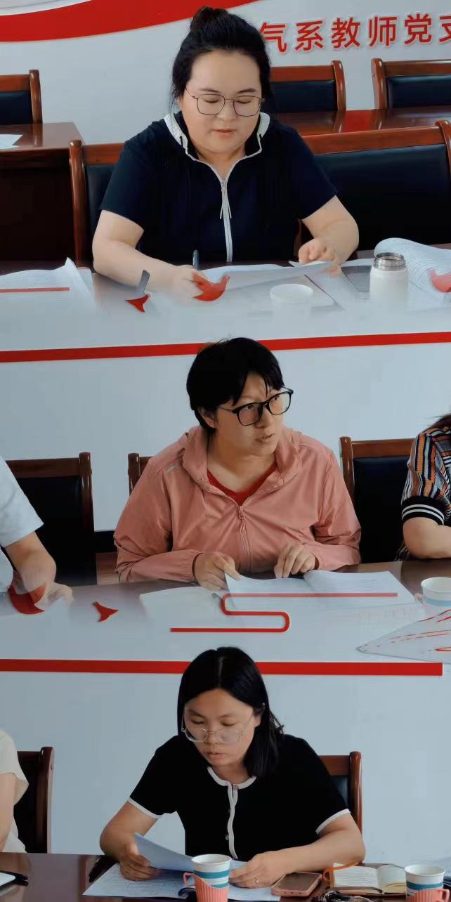 电气与控制工程系副主任郑婷一、资源与环境工程系能源与环境系统工程教研室主任巩国丽、机电工程系副主任王颜辉结合个人工作实际和学院发展需求,就《中国共产党纪律处分条例》专题学习内容进行了交流发言。发言中谈问题不足、谈贯彻执行的打算,紧扣党的政治纪律、组织纪律、廉洁纪律、群众纪律、工作纪律、生活纪律,把自己摆进去、把职责摆进去、把工作摆进去。