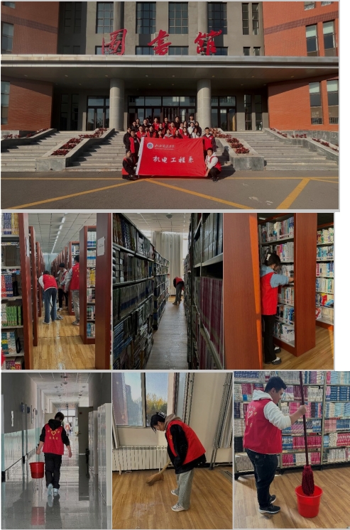 另一组志愿者则承担起了图书馆环境清洁的任务。他们拿着扫帚、拖把和抹布,清扫地面、擦拭书架和桌椅。他们不怕脏、不怕累,用自己的辛勤劳动为同学们营造了一个干净整洁的学习环境。