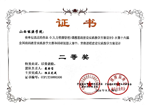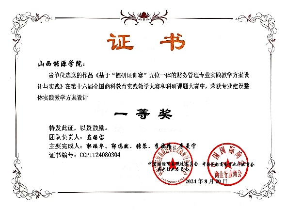 此次竞赛历时8个月,汇集了来自全国28个省、市、自治区286所高校、企业和机关单位,共867件作品参加全国总决赛。经过激烈角逐,我系副主任(主持行政工作)戴国宝博士负责提交的作品《基于“德研证训赛”五位一体的财务管理专业实践教学方案设计与实践》荣获专业建设整体实践教学方案设计一等奖,《应用型本科高校校企共建“冠名班”配套实践教学方案设计》荣获配套实践教学方案设计二等奖,《<人力资源管理>课程思政建设实践教学方案设计》荣获课程建设实践教学方案设计二等奖;朱丽丽老师负责提交的作品《<数字经济实验>教学方案设计》荣获课程建设实践教学方案设计二等奖;李曼宁博士负责提交的作品《<能源经济学>课程建设实践教学方案设计》荣获课程建设实践教学方案设计二等奖。
