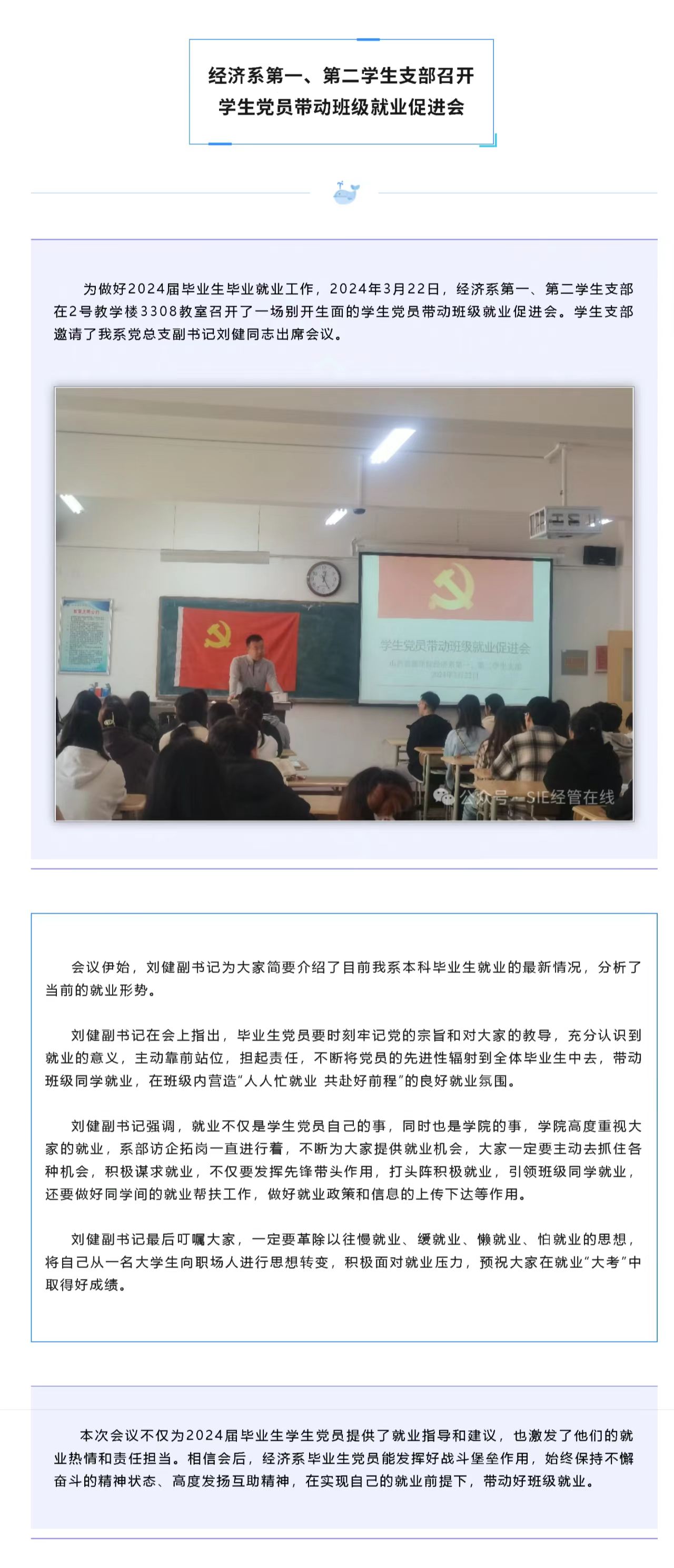 经济系第一、第二学生支部召开学生党员带动班级就业促进会