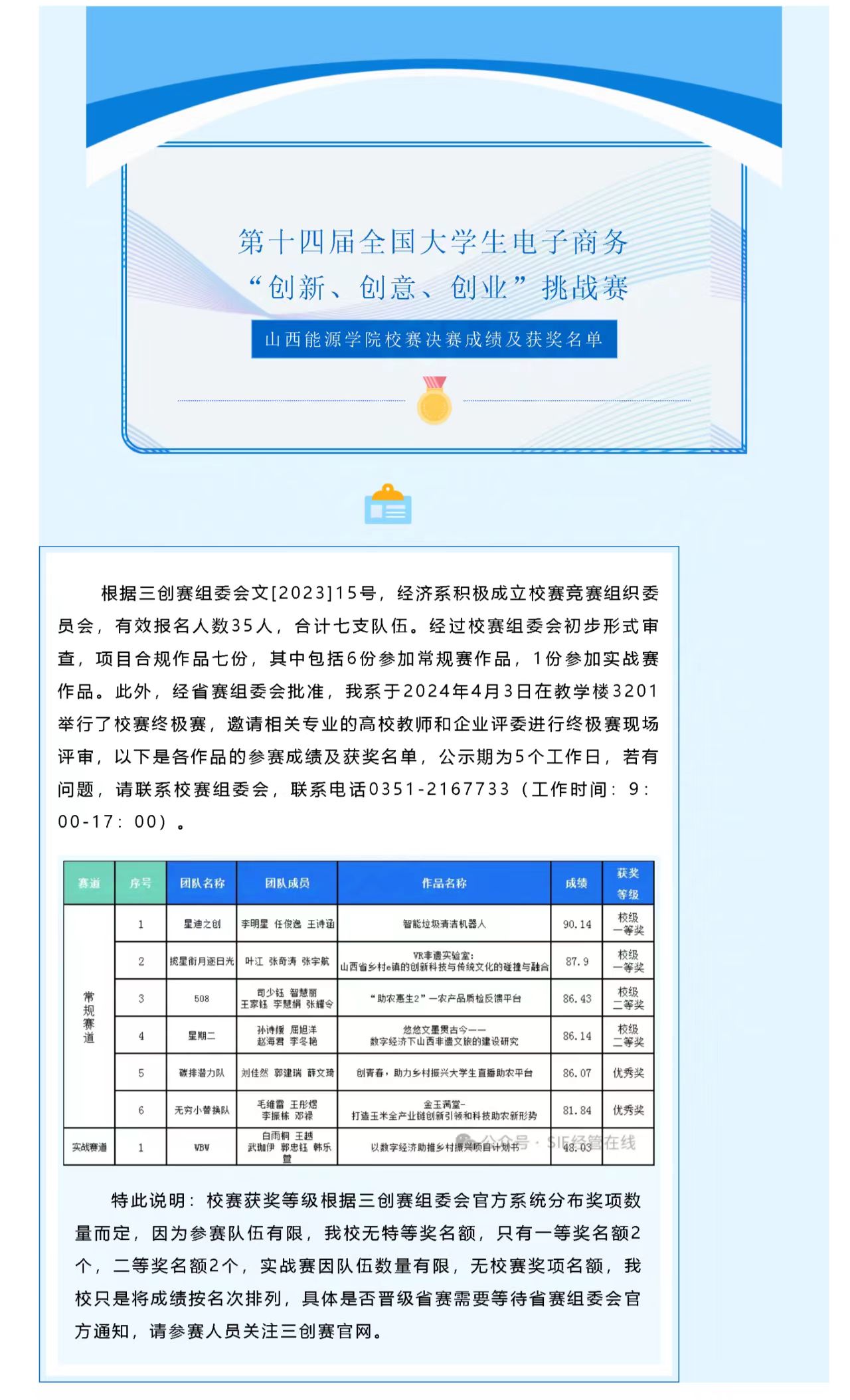 第十四届全国大学生电子商务“创新、创意、创业”挑战赛beat365英国官网校赛决赛成绩及获奖名单