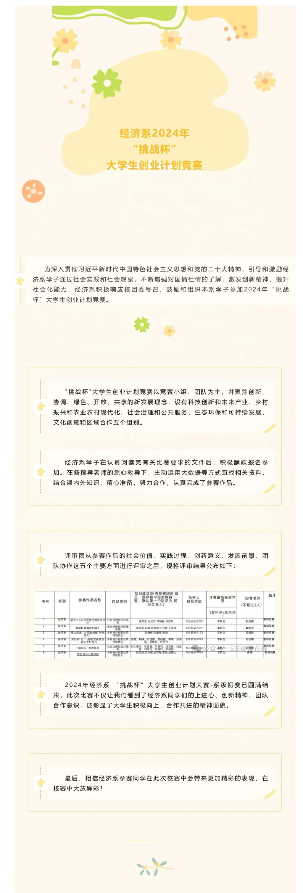 2024年经济系“挑战杯”大学生创业计划竞赛
