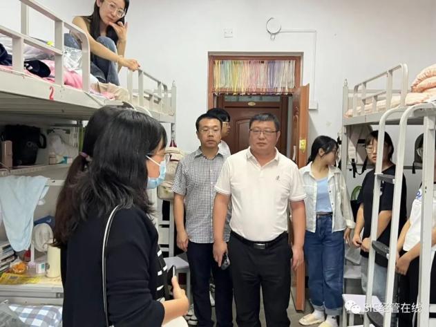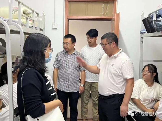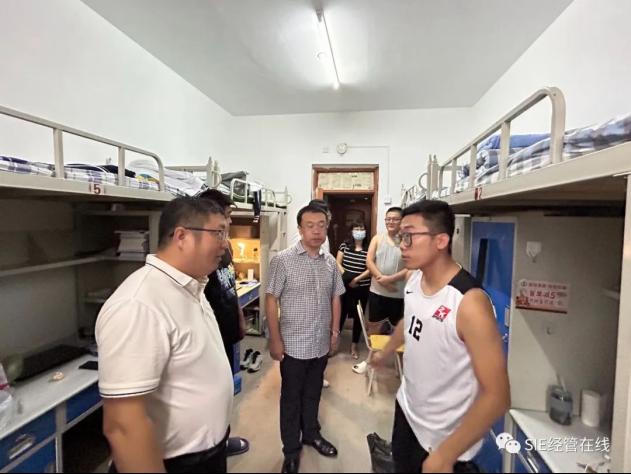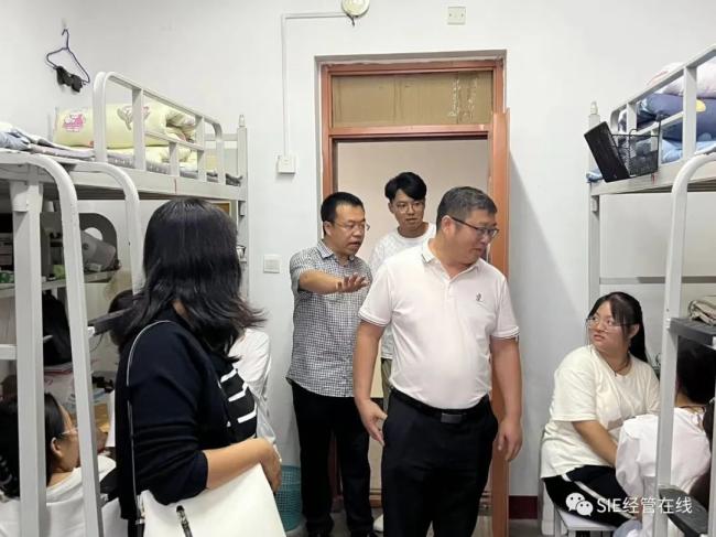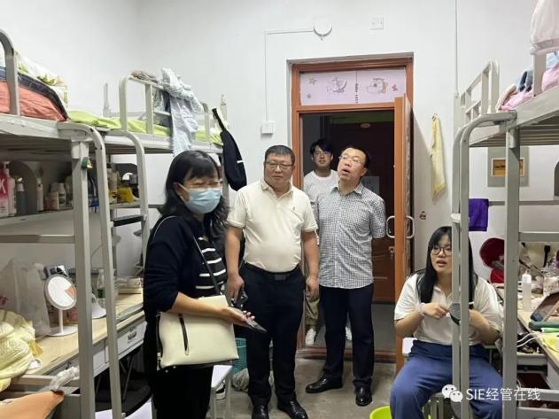 9月11日下午,科技产业部副部长、经济系行政负责人戴国宝,管理系副书记刘健、系团委学工办老师去往新生宿舍进行走访交流,实际查看住宿环境,深入学生群体了解大家的所思所想,更好也更全面的了解大家的需求,帮助学生们解决问题,让学生感受到学校和系部的温暖与热情。