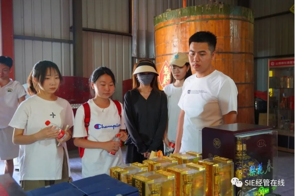 经济系实践队成员首先来到梨花春酿酒集团,先后参观了梨花春清香白酒酿造车间、梨花春非物质文化遗产展厅和梨花春30年原浆酒贮存中心,并品评梨花春白酒。在梨花春白酒非遗展厅通过工作人员的介绍详细了解梨花春白酒酿造技艺这一国家级非物质文化遗产的历史溯源、酿酒技艺、千年传承等,队员们对梨花春白酒有了更深入的了解,对非物质文化遗产有了更深刻的认识。