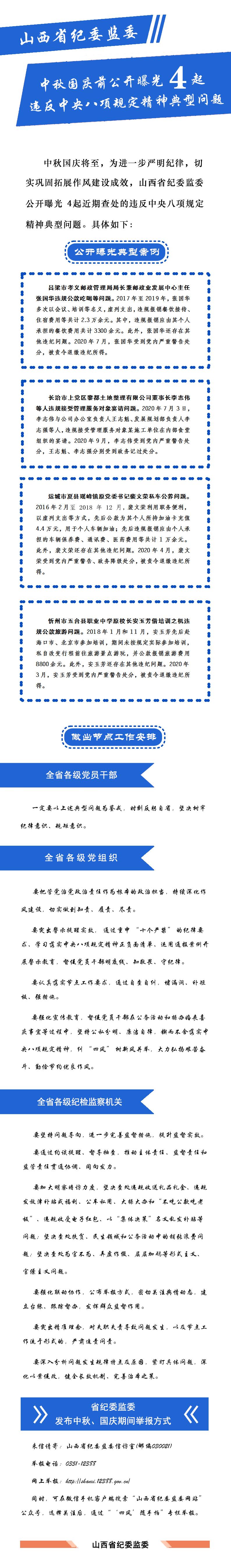 省纪委监委中秋国庆前公开曝光4起违反中央八项规定精神典型问题