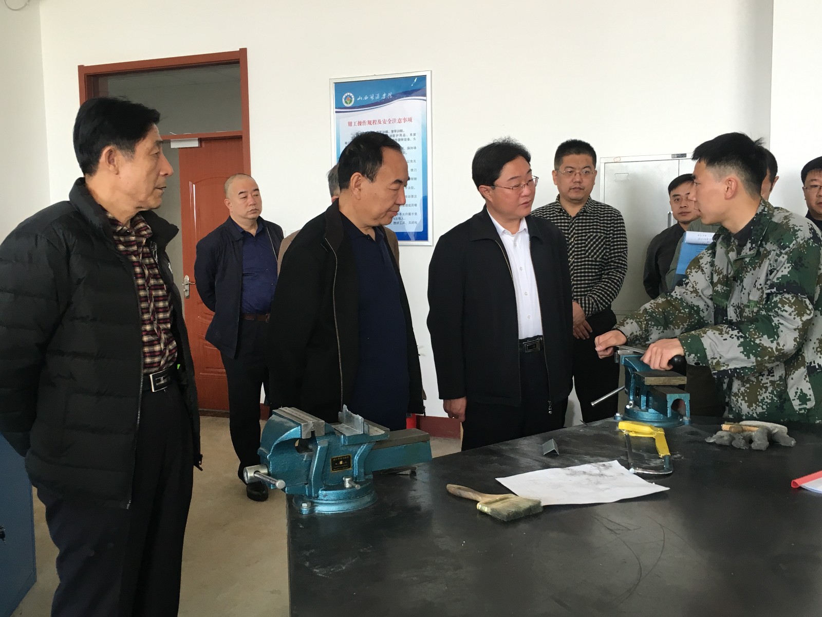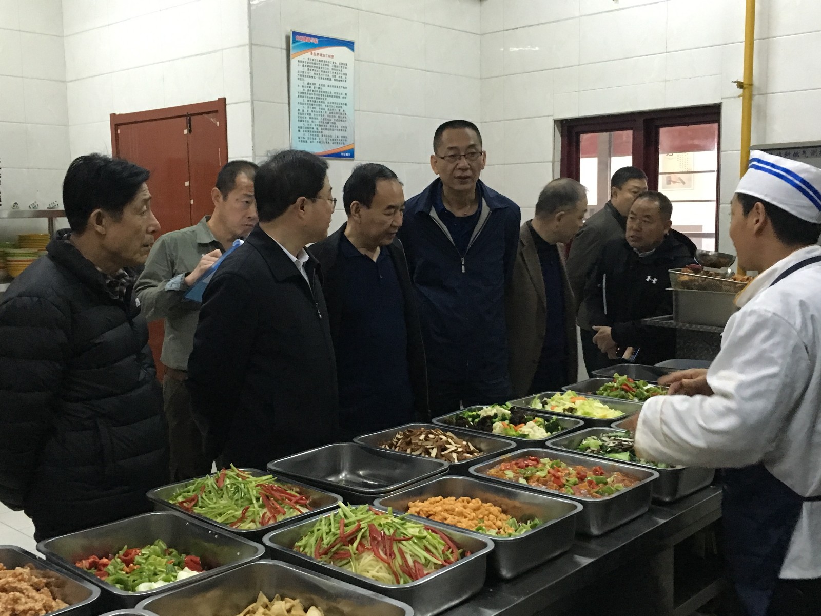 随后,常院长、李院长带领检查组来到实验实训中心,在电机实验室询问了实验指导老师在实验课前是否给学生进行操作前的安全教育,实验老师回答了实验课前对学生的安全操作规程的程序,在检查到电机实验380伏插头时,常院长指出叠插插头有裸露部分,指示实训中心尽快和厂家联系,研究如何改进,保证叠插实验的要求,解决裸露的问题。在精工车间车床前,常院长询问了指导老师,车床安全操作教育内容,在查看车床实验台时,常院长指出,车床前应加装一个围挡,保证单人操作时,不发生其他人误操作而引发安全事故。李院长询问了实训中心领导,各个实验室是否落实了实验室专人管理,实验前是否都进行了实验操作安全教育,安全管理制度是否上墙等。实训中心领导都一一作了答复。检查组又来到餐厅,在餐厅,常院长仔细检查了食品库存放的米、面、油,调味料,询问了食材的存放时间,查看了进货单据。检查询问了食品加工程序,从业人员的体检健康情况,指出食品材料要保证新鲜,尤其是豆类制品容易变质,一定不能过夜再出售。在检查到食品留样间时,常院长指出,留样种类少,多购一些餐盒,留样种类要全覆盖。检查组又来到学生公寓进行了检查,在学生宿舍,常院长看到了部分生学生宿舍地下有烟头,宿舍内可燃物、易燃物较多,如摆放的鞋盒等物品、书本、窗帘等,遇到烟头,很容易引发火灾事故,常院长指示学工部同志,尽快研究制订一个方案,禁止学生宿舍内吸烟,发现吸烟的考虑从学分、评选优秀、奖学金发放等方面进行制约。