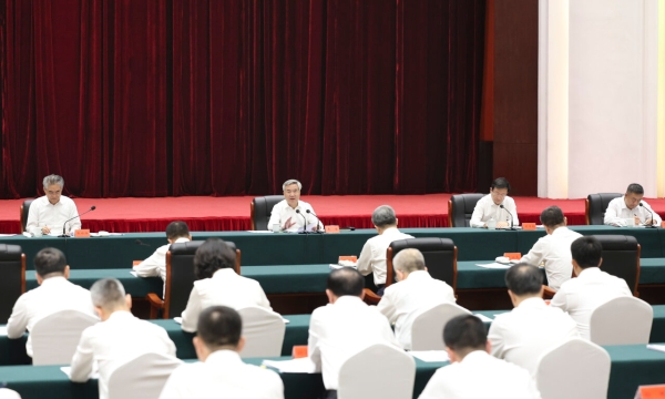 7月2日至5日,中共中央政治局常委、中央纪委书记李希到山西调研。这是7月4日,李希在太原主持召开座谈会,了解纪检监察机关深入推进全面从严治党、正风肃纪反腐、开展党纪学习教育等情况,并听取意见建议。 新华社记者 丁海涛 摄