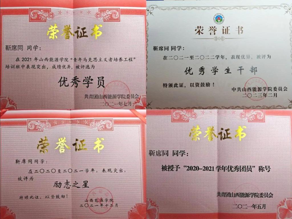 大学期间所获部分荣誉证书