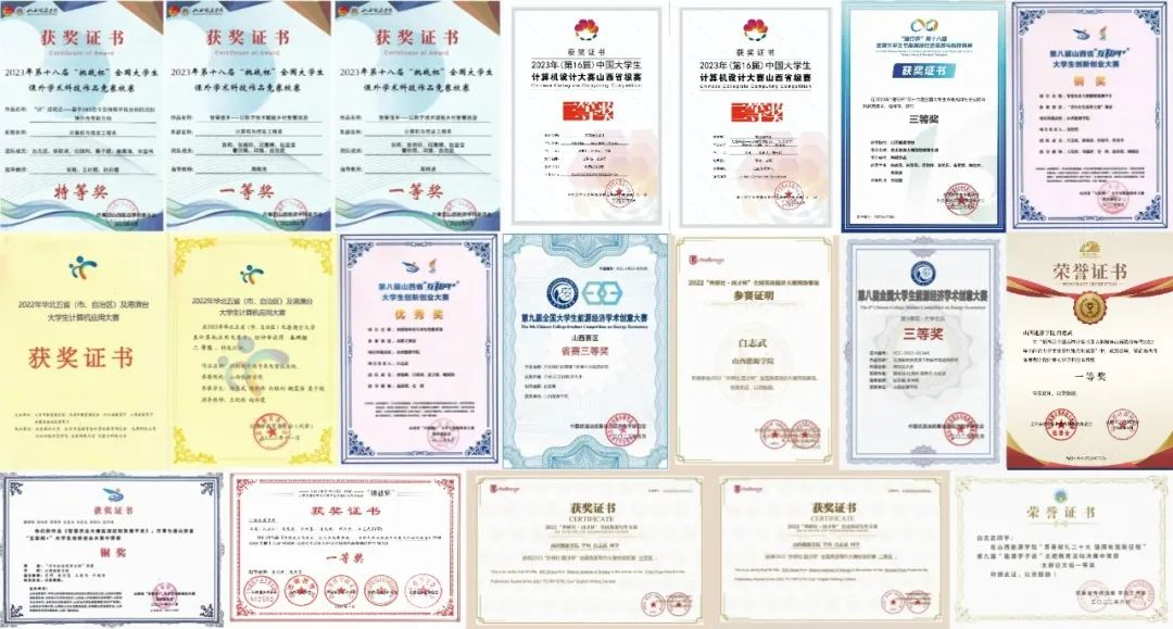 (一)2021年,他报名参加了中国国际 “互联网+”大学生创新创业大赛,带着基于区块链的智慧农产品溯源项目,走进乡村、走进农户,和团队实地考察数十家农业大棚,与数十位农户、企业深入交流沟通,与山西省农业经济学科青年学术带头人、区块链研究会会长李富忠教授展开学习交流。作为项目负责人带领团队取得了中国“创翼”暨星火大赛校一等奖,第七届中国国际 “互联网+”大学生创新创业大赛山西省铜奖、中国大学生计算机设计大赛山西省三等奖的好成绩。