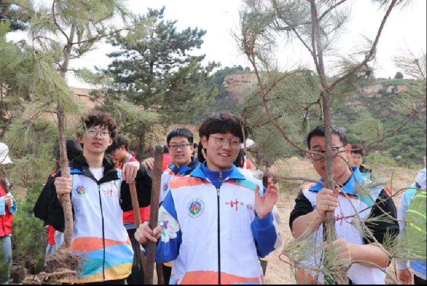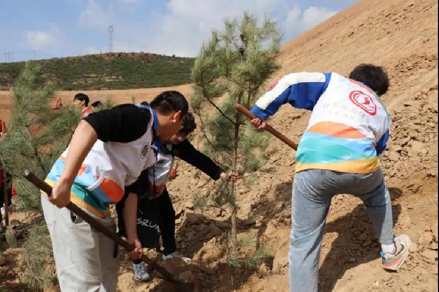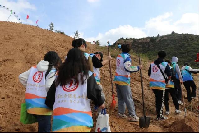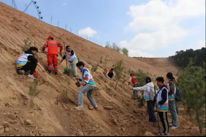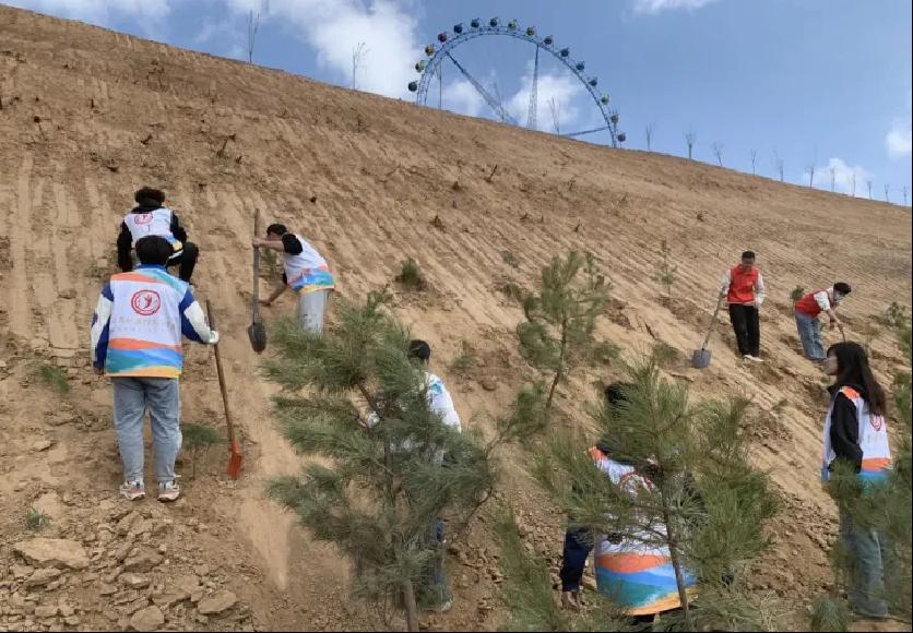 活动现场,我系青年志愿者与各高校的志愿者们齐聚乌金山,他们手持铁锹、铲子等工具,热情高涨地投入到植树活动中。