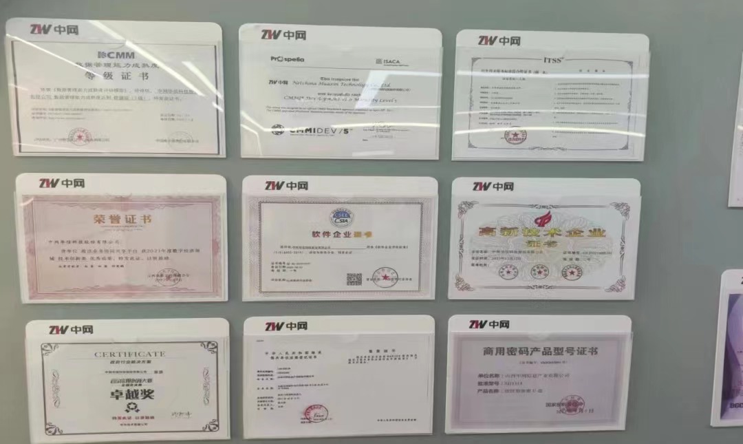 中网华信公司的资质认证(部分)