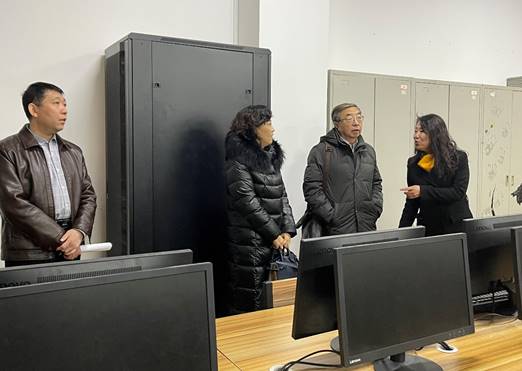汇报结束后,在邓越萍主任的陪同下,专家组成员陈俊杰教授、赵涓涓教授前往我系实验室进行实地考察。邓主任分别介绍了软件实验室、网络实验室、能源云数据分析实验室的设备配置、运行情况等基本情况。陈俊杰教授和赵涓涓教授分别就实验室能够开出的课程、实验室的利用率等方面问题进行了询问。