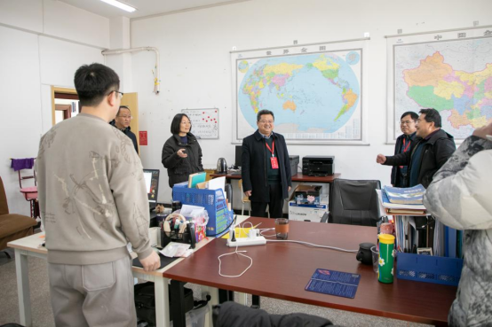 冯国瑞院长亲自带领一组,围绕教学开展情况,率先到各教学楼和监控室,实地查看了教师授课和学生学习情况,走访了地质与测绘工程系、电气与控制工程系与矿业工程系,查看了各办公场所,并与教职工进行了亲切交谈,对师生新学期的良好精神风貌予以充分肯定,鼓励大家在教学、科研等方面勇攀高峰,争取获得更加优异的成果。