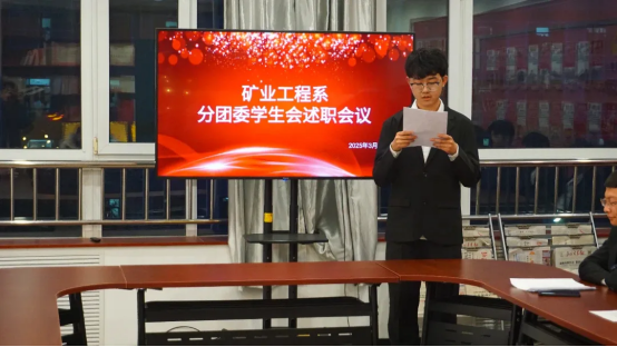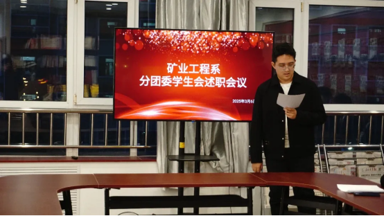 为进一步加强矿业系学生会组织建设,提升矿业系学生会干部的服务意识与工作能力,3月6日,矿业系学生会在党员活动室召开矿业系学生会述职大会。陈月老师,苗常霖老师,矿业系学生会主席团成员及各部门负责人参加会议。此次会议旨在全面了解系学生会在过去一学期的工作开展情况,总结经验、发现问题,以便在新学期调整工作方向、优化工作方法。