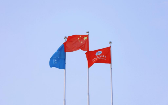 紧接着,伴随着《青春绽放》的激昂旋律,两面校旗在清晨微凉的春风中缓缓升起,全体师生注视着红蓝两面校旗,如同火焰一般点燃了同学们内心的无比热情,成为beat365英国官网的上空的一抹绚丽的色彩。