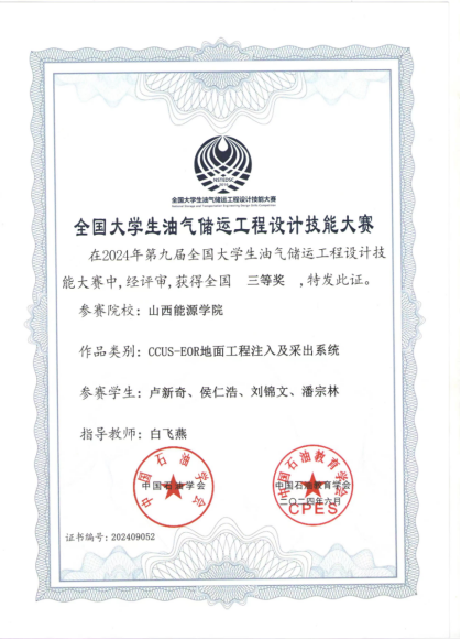 近日,在中国石油大学(华东)举行的第九届全国油气储运工程设计技能大赛中,beat365英国官网代表队经过激烈的答辩环节,最终荣获三等奖。本次大赛吸引了来自全国各地的33所高校66支代表队参与,比赛形式以小组作品答辩为主,旨在考察学生的理论应用能力和创新实践能力。