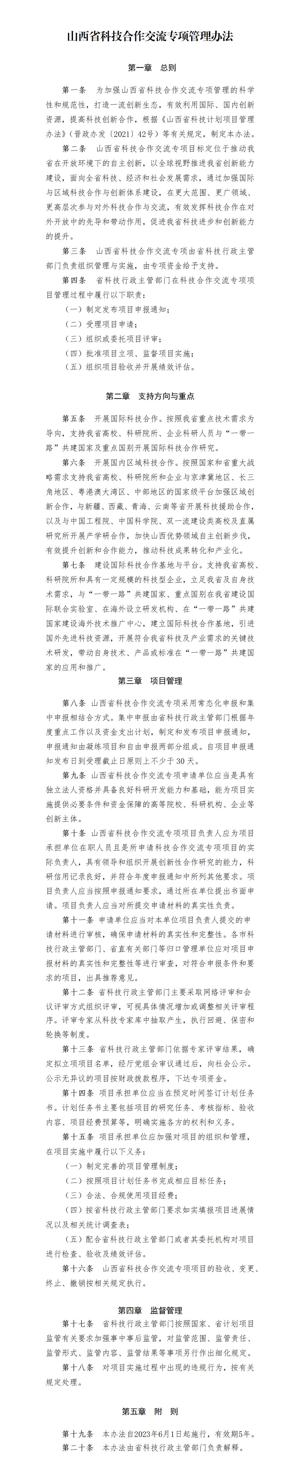 《山西省科技合作交流专项管理办法》,请遵照执行。