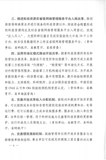 山西省科学技术厅 山西省教育厅 山西省财政厅 山西省人力资源与社会保障厅 山西省国资委 山西省市场监督管理局 关于印发《关于加快推进全省大型科研设施与仪器等科技资源开放共享的若干措施》的通知