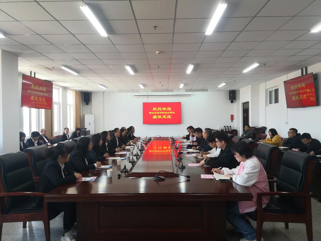 4月12日上午,晋中市榆次区新华街道领导班子成员、各社区党委书记、居委会主任一行到访beat365,就校地共建进行交流座谈。校团委负责人赵浩成、各系部负责人及骨干教师代表参加座谈会,会议由科技产业部负责人翟志伟主持。
