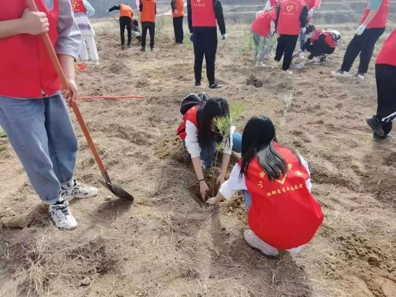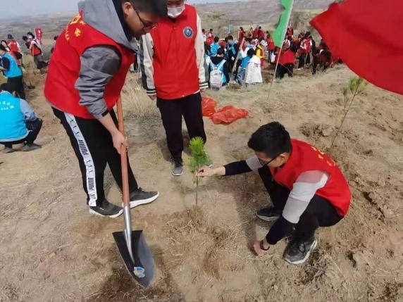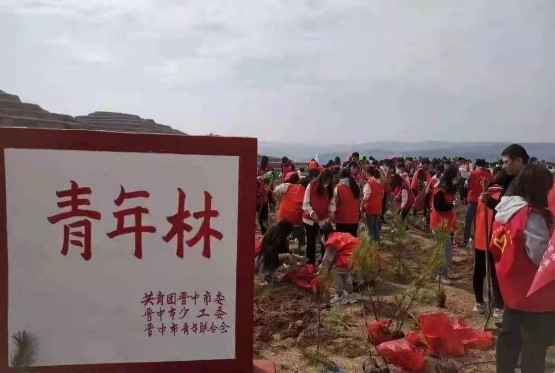 共青团晋中市委工作人员向参加活动的青年和志愿者发起了保护环境,节约资源等倡议。并组织大家开展护绿、植树、建立“青年林”活动:栽下1500株小树苗,并为树木培土、浇水。