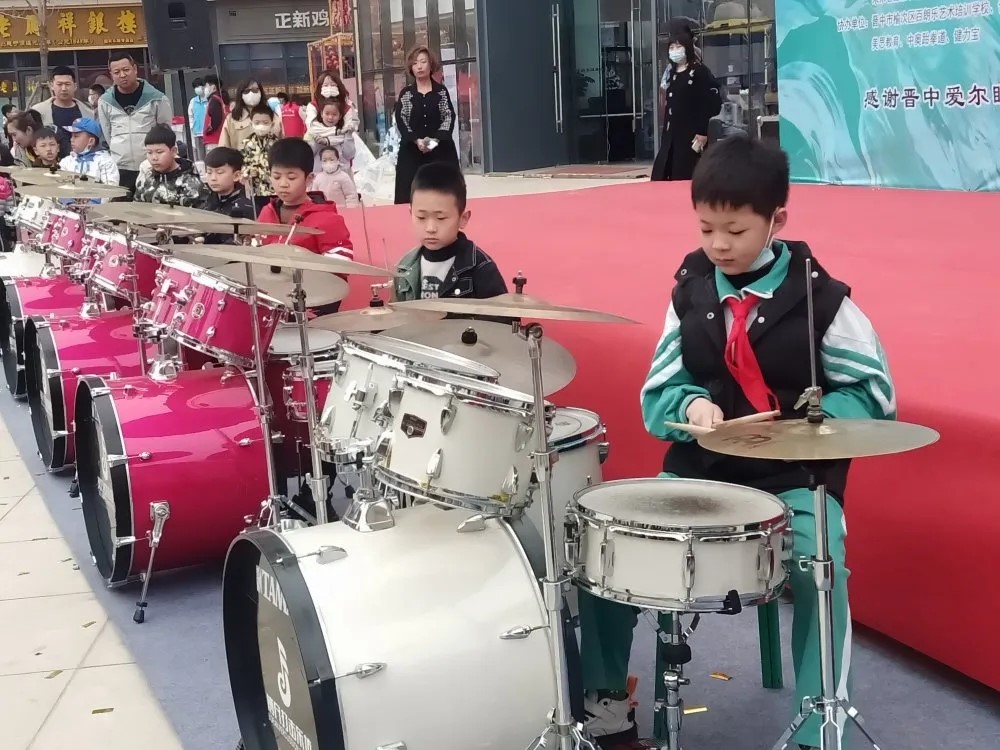 活动的主办方还邀请了锣鼓队来助阵,让孩子们更好的了解山西的锣鼓文化。