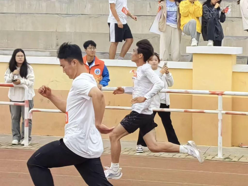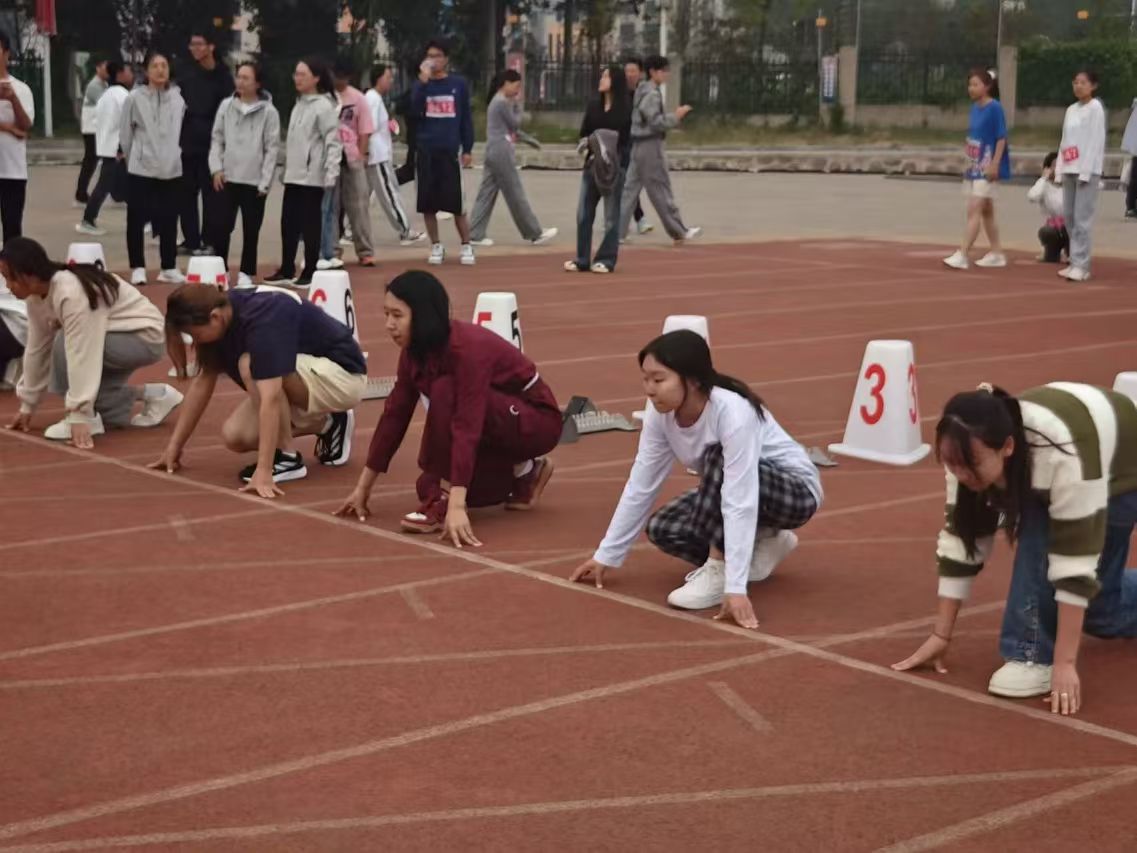 广阔的跑道上,运动员心无旁骛,他们蓄势待发,似离弦的箭,迈着矫健的步伐冲刺,一声声信号枪声,一个个冲刺身影,于起点听鸣枪之音,于终点听欢雀之声。