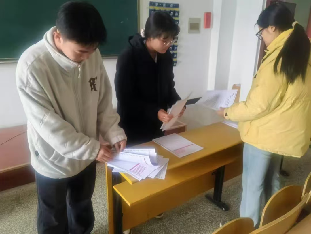为保障考试顺利进行,考场监考员提前到达考场做好准备工作。