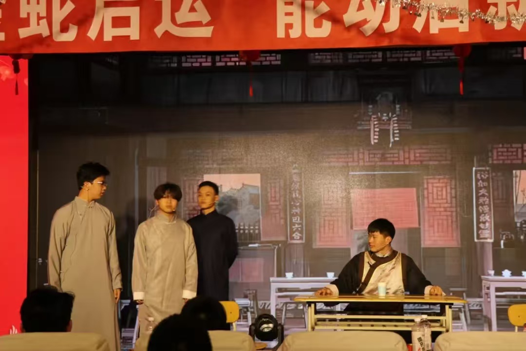 元旦晚会华彩绽放,于中场特别设置知识问答环节,趣味盎然。题目类型丰富多样,既有妙趣横生的看图猜成语,也有紧密围绕校园文化的beat365校训、特色专业问答,更有紧跟时代潮流的看图猜网络热梗等题目。这些问题一经抛出,同学们热情高涨,纷纷踊跃抢答。这一环节巧妙地激发了同学们的参与热情,进一步调动了现场欢快而热烈的氛围,使晚会高潮迭起,精彩纷呈。