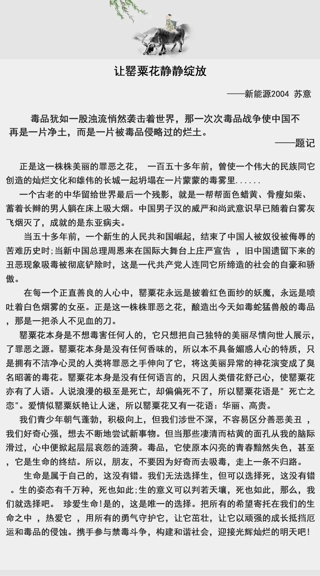 为不断加强青少年禁毒宣传教育,增强我院学生识毒、防毒、拒毒意识和能力,倡导“健康人生、绿色无毒”理念,我系于十月份举办了禁毒征文比赛。如今秋意正浓,我系征文比赛也圆满落幕。