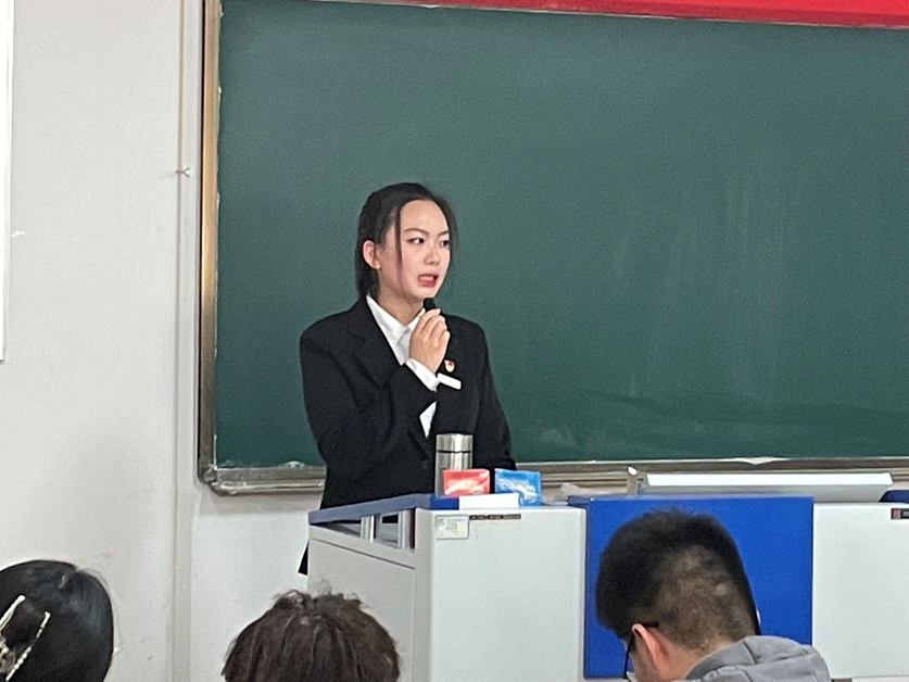 预备党员代表祝路云表示会时刻不忘自己作为一名新青年的使命和担当,持续深入学习党的十九届六中全会精神,不断武装自己的思想,把握时代方向,响应党积极推进科技自立自强的号召,树立专业自信,发挥专业才干,用马克思主义理论武装头脑,将实践观落到实处。善用所学,进一步领会和把握党的百年成就给予我们的重大启示和宝贵经验。