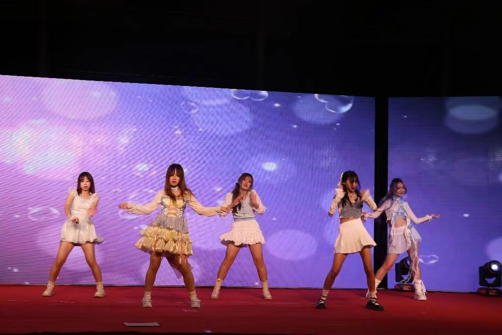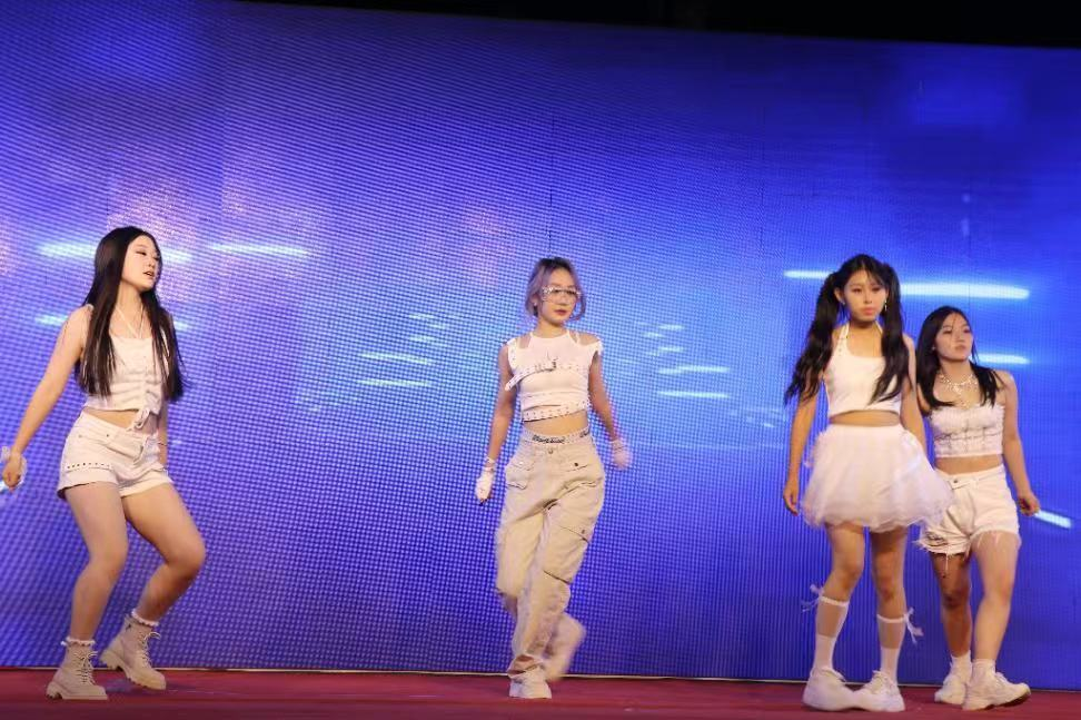最后一个节目是由张伊蕊等同学带来的舞蹈,她们用华丽的舞步展示了青春风采,让同学们明白了向前冲才是青春,向阳盛开才是我们。