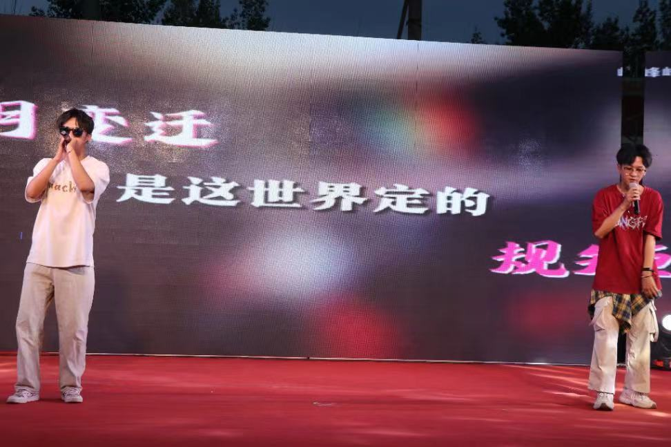 第十三个节目是由刘洋等同学带来的歌曲,他们用极致的说唱让同学们感受到了青春的洒脱,“任世间风风雨雨,我自有我的特立独行”。